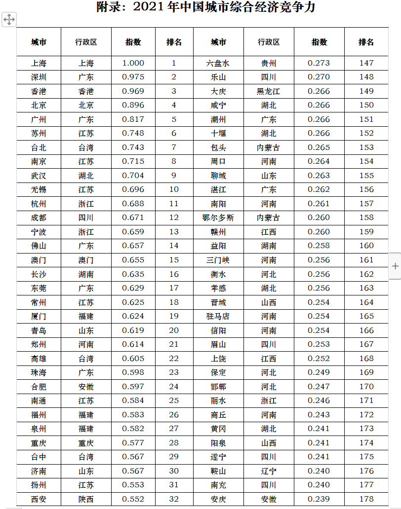 另外微信推荐机制改了,为了不错过每天的发布中国城市竞争力排行榜,大家记得添加星标,感谢大家的支持!