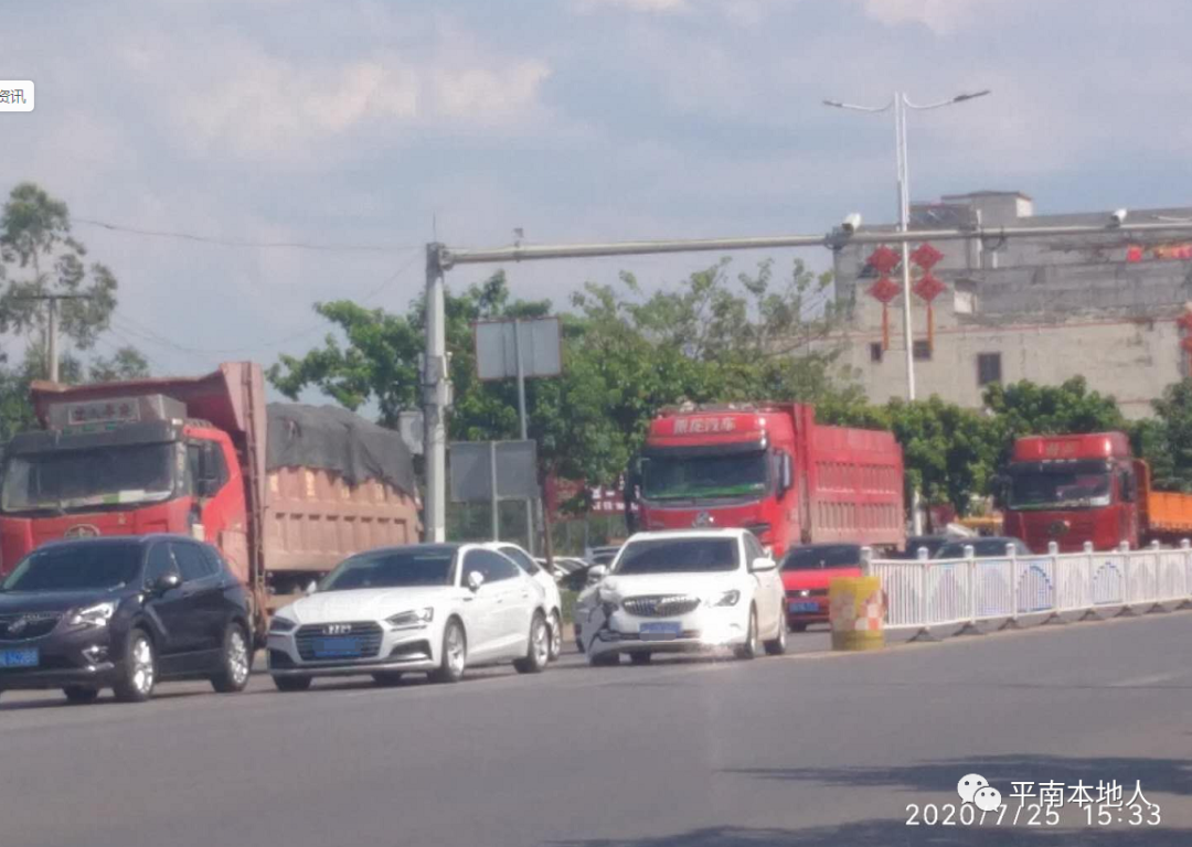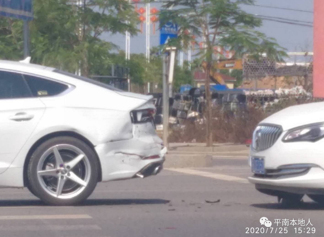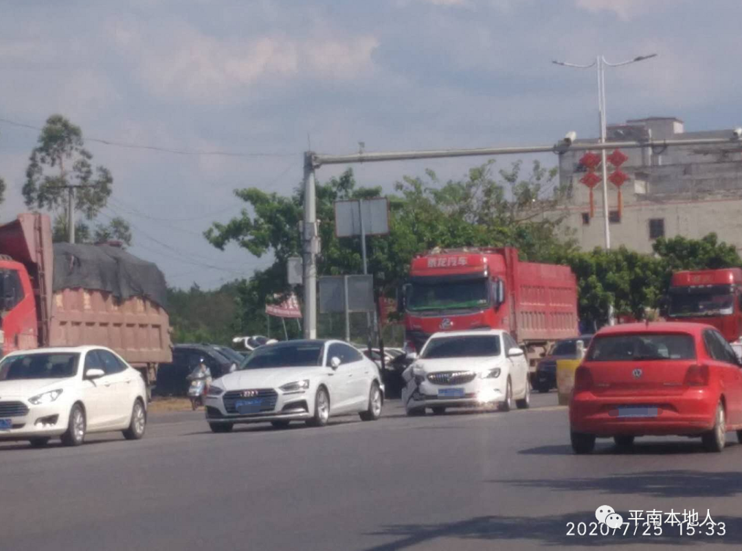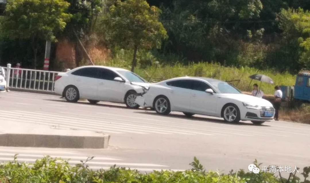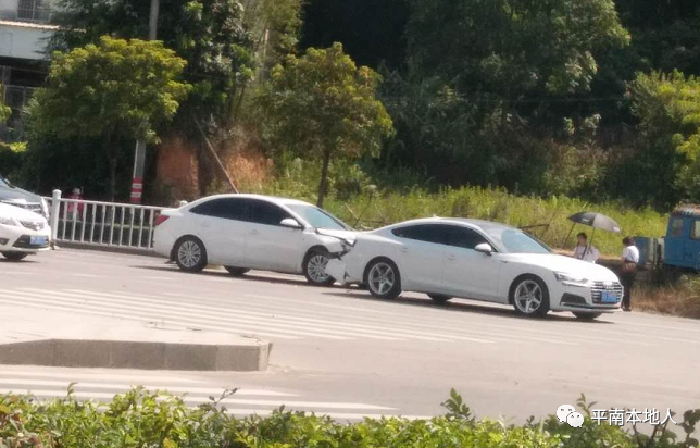 网友爆料,今天(7月25日)就在三点十五分左右,在平南迎宾大道,镇隆高铁站路口,发生了一起别克小车追尾奥迪小车交通事故。