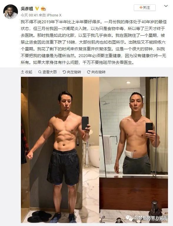 曾经的明星,怎么大变样了?原来,在去年底,他因为阑尾炎入院,几乎丧命。1月还有让人羡慕的六块腹肌;3月医院走一遭,体重下跌18磅。更令人后怕的是,明明身体已经发出求救信号了,他还以为只是食物中毒,足足耗了3天才去医院检查。