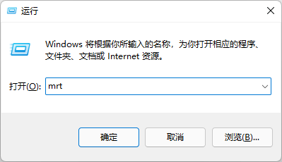 ① 按住 Win + R 快捷键打开运行,输入「mrt」回车,调出系统自带的恶意软件删除工具。