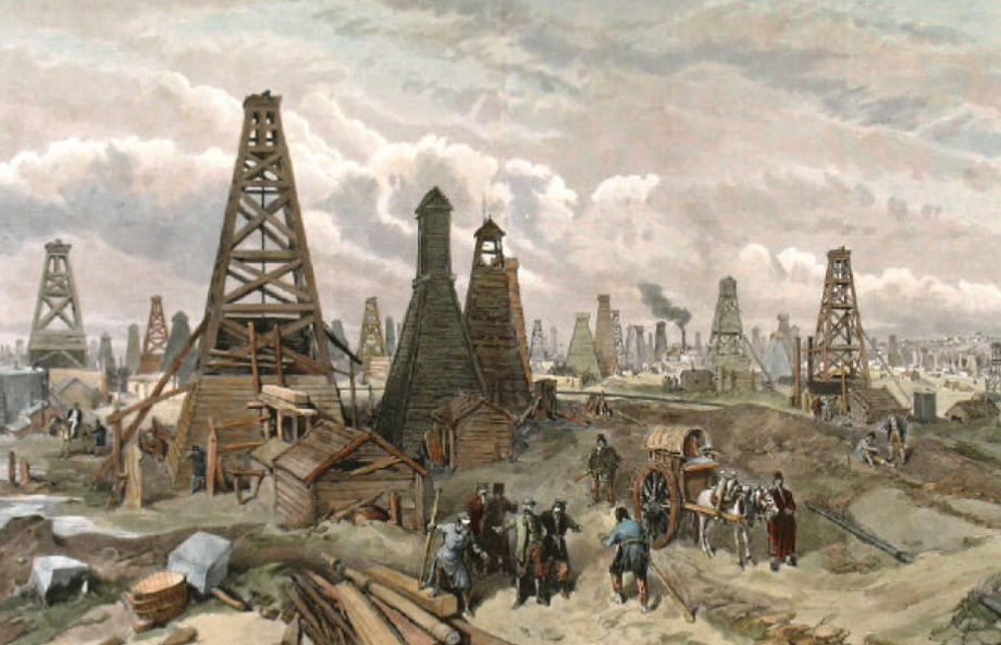 ◇1886年,威廉·辛普森绘制的油画《里海巴库的石油威尔斯》