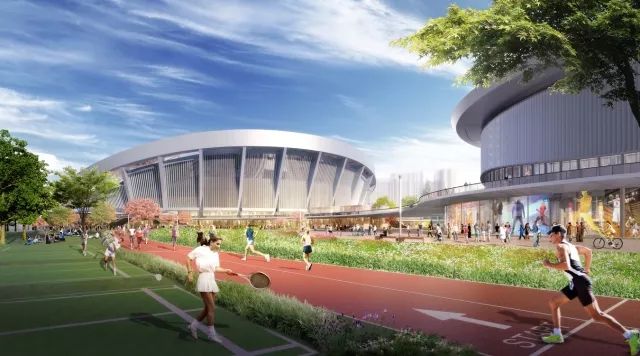 同时新建两条分别为2.3公里和1.8公里的环形健身跑道分别串联南北两大公园,外圈跑道联动城市界面八万人体育场,内圈跑道穿梭于绿化景观,营造提升跑步体验。