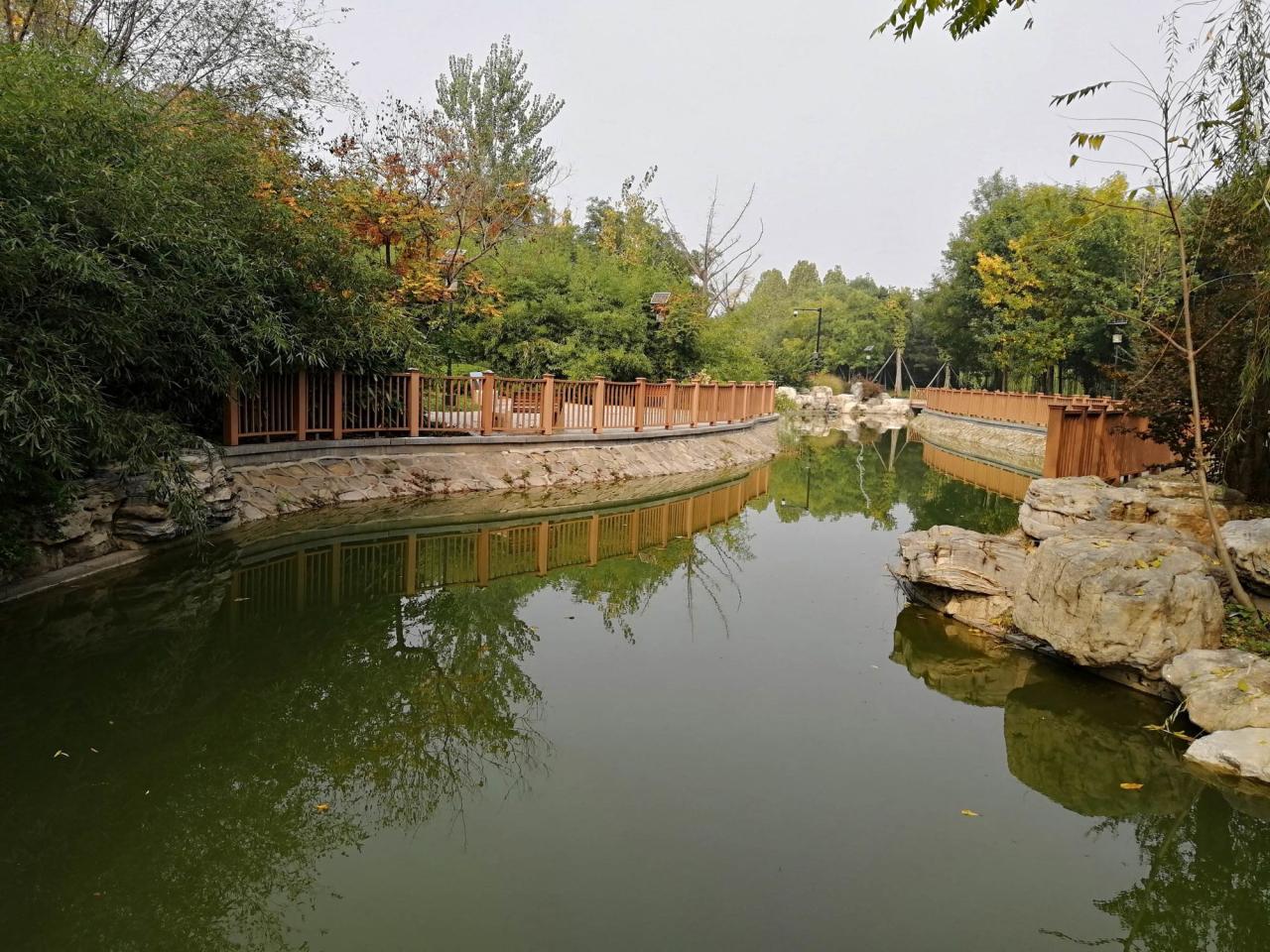 漫步园区内,充满野趣的石阶漫步道、层次丰富的山水景观、运河两畔的一片新绿。昔日荒芜之地如今化身城市天然“绿肺”,园区内100万平方米的园林绿化,犹如一袭“青衫”披在运河周边。一直以来,项目团队秉承绿色建造理念,建设前期,通过对园区土壤、地质做全面检测,并设点实验,调配出盐碱地土壤改良的最优试剂,创造性地解决了大量盐碱地园林绿化技术应用;针对反季节栽种难题,中铁八局沧州园博园项目部为上千株名贵苗木制定从运输至栽种的全过程施工方案,极大的提高了成活率,成功的在运河两岸孕育新机,建出“桃花源”。