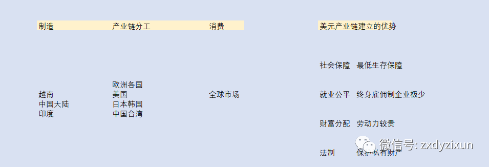 1 足够强大的美元贸易圈及共同价值观的全球产业链,美国及北约负责军事行动,各国负责科技、经济协调。