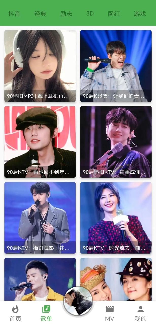歌单这一版块是歌曲分类区,展示的各种不同风格和类型的歌曲,有游戏、情歌、影视、励志等等,其中,很多歌曲都是我们非常熟悉的经典曲目。
