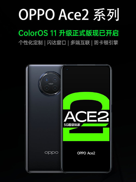 OPPO Ace2还支持10W 反向充电,搭载了屏幕指纹识别。而且刚刚优先升级到了ColorOS 11,率先尝鲜。