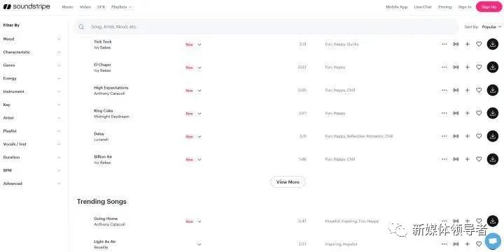 一个国外的免费音乐网站,提供的音乐风格超级丰富,打开页面就可以看到很多单首歌曲推荐,每首歌曲有不同的标签音乐风格标签。