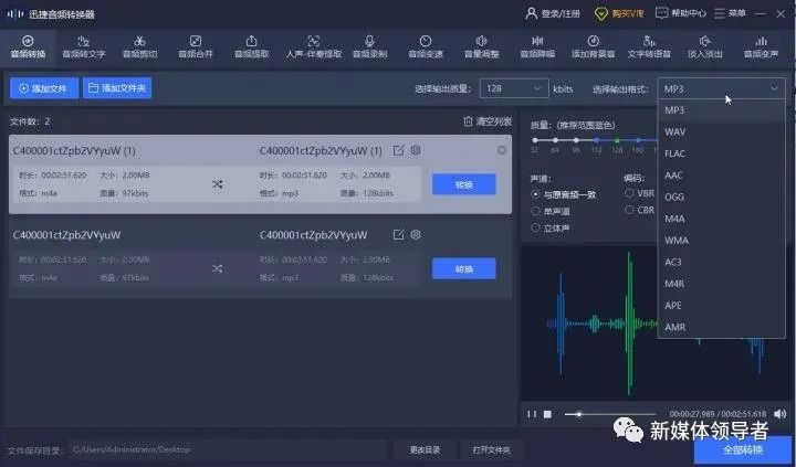 上面和大家分享了这么多免费下载音乐的网站,部分音乐平台下载的单曲不是MP3格式的话,给大家分享一个格式丰富的音乐转换工具-迅捷音频转换器,提供了几十种音乐格式相互转换。