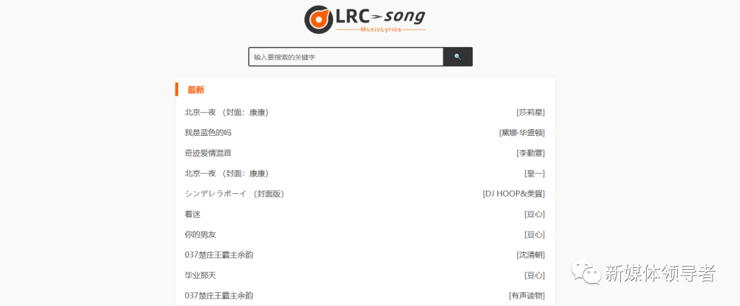 一个比较强大的歌曲和歌词搜索网站,打开页面你可以直接输入歌名、歌手、歌词等关键词搜索喜欢的音乐,支持免费搜索华语、欧美、日韩等多个国家的音乐。