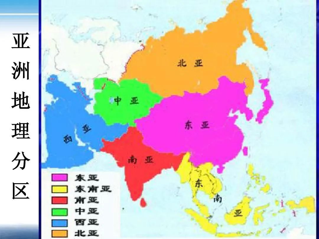 东亚、中亚(西方位)、北亚、南亚、西亚。