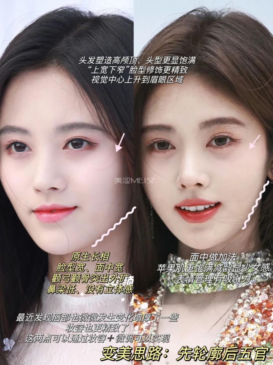 面中部这个很难讲,但是我观察到的现象都比较极端。如果有人苹果肌发育特别饱满,类似豆得儿那种,大概率是川渝妹子;如果有人是凹面型,还又就是面中平坦看着营养不良楚楚可怜的,也很大概率是川渝人(鞠婧祎整容前)。