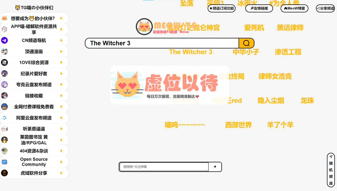 同样是一款专注于TG频道搜索的网站,常见的资源种类基本上都可以搜到。或者点击左侧的功能栏也可以进行相关方面的搜索但需要科学上网才可以进入到相关TG频道。