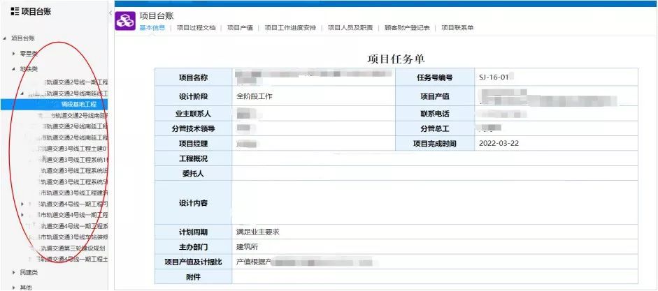 项目立项后,通过表单建模功能结合项目类型对设计研究院的大小项目进行分类,形成专属项目库。