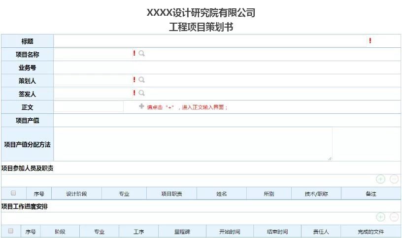 立项后的项目,相关人员依照制度和现场勘察情况,在系统提交项目策划书,填写项目策划详情、明确项目产值分配、制定工程进度及项目具体组成人员。