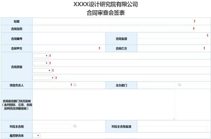 提交合同基本信息,经相关人员会签审批后归档形成合同记录。