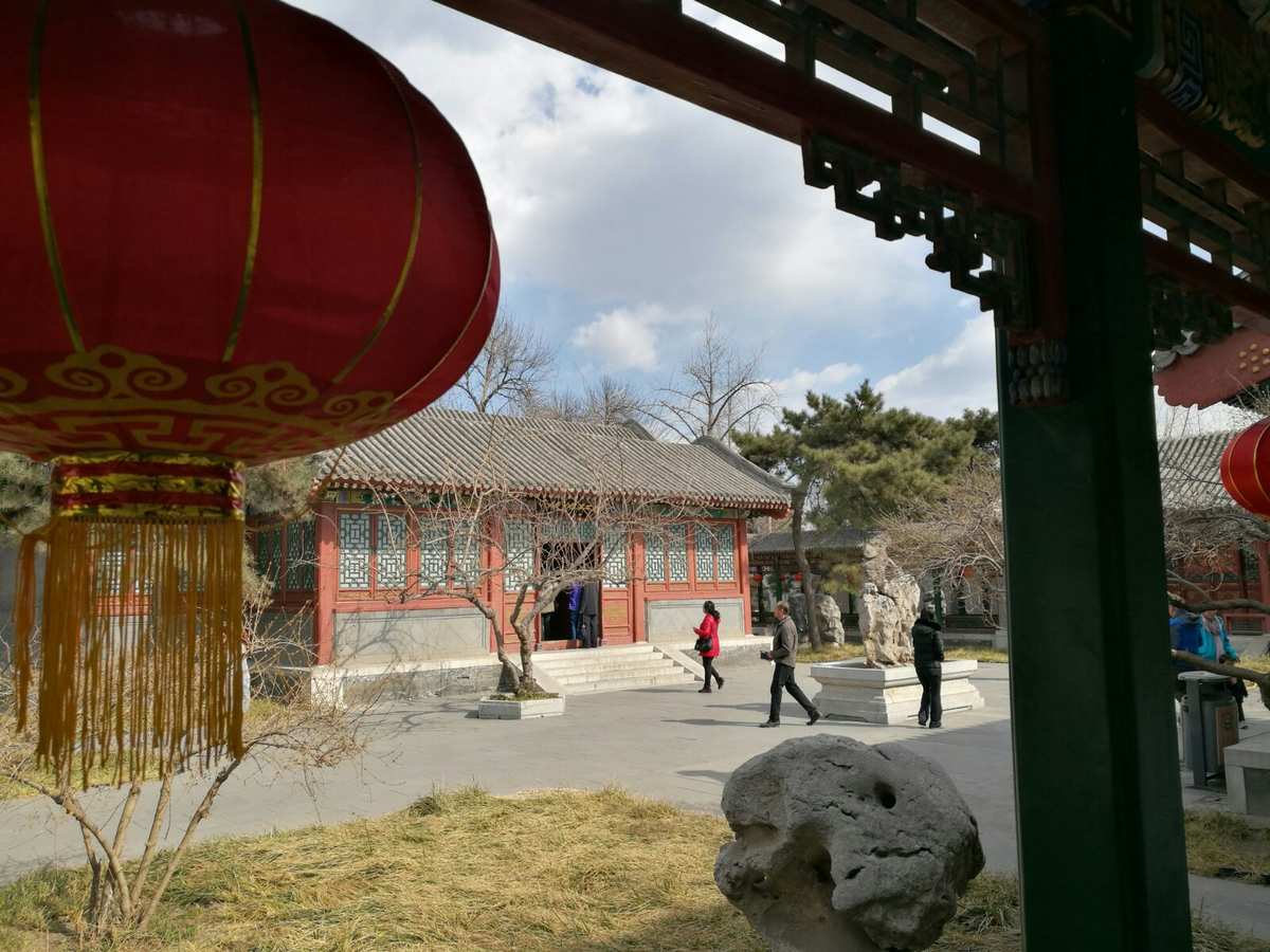 来到蘅芜院景点的主建筑。这是一处斗拱飞檐,朱漆木质的高大仿古建筑,给人以威严厚重的感觉。想必它也是蘅芜院中除了众多的景观石,唯一占据重要空间的建筑了。铁石般的境地,我不知道贾政执杖教训宝玉时,是不是就在这里!