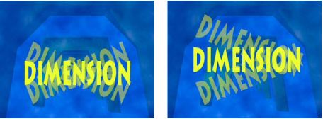 位于文本图层中心的锚点(左图)和移动到文本图层末尾的锚点(右图)的比较