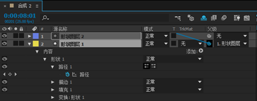 拖动形状图层 1(子图层)时间轴面板中的关联器,以指定形状图层 2 作为父图层