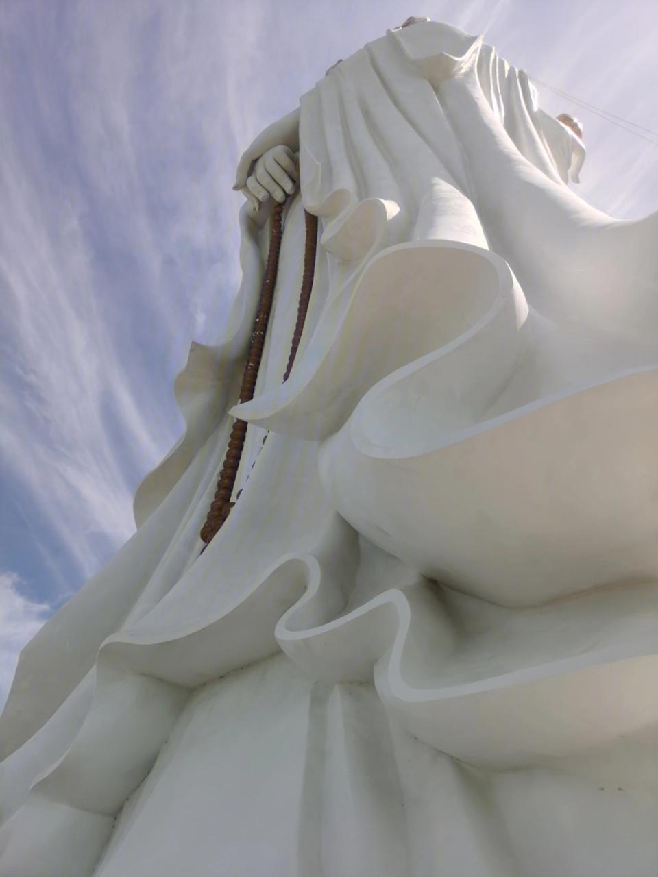 看这张图,观音旁有个小小的飞机,(坐在飞机左侧,可以在降落时空中欣赏宏伟的南海观世音哦。)重点来啦!究竟海南观音为什么这样灵验呢?这也是有故事的。