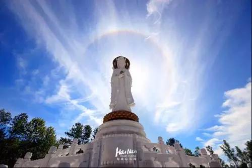首先南海,本就是观世音菩萨的道场。建设南海观音的过程中,每一个日期都按照工程的定量完成,海上观音建成之后,南山寺与中国佛教协会共同协商,决定在观音菩萨的六化身之一诞生之日(农历3月16日)进行开光。(这一天还是黄道吉日,也是非常吉祥的)