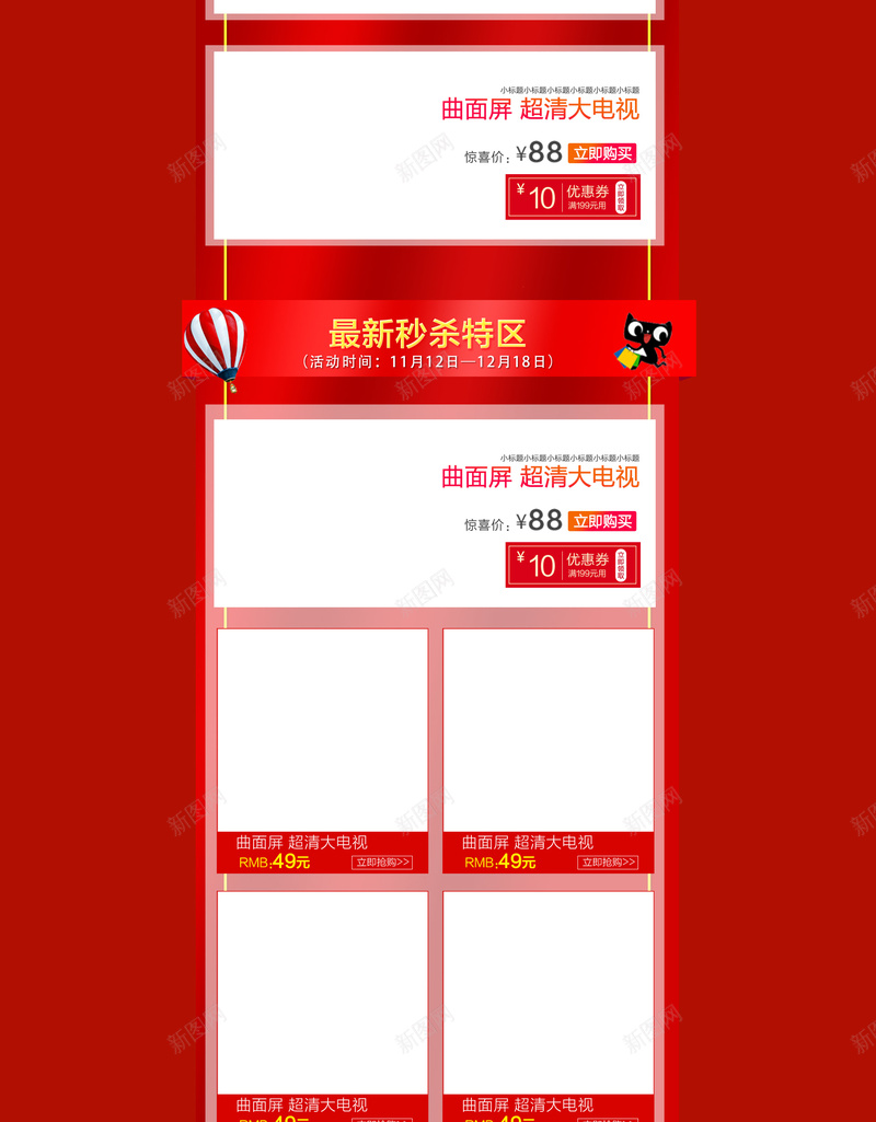 第四部分就是产品模块了,也是首页非常重要的一部分内容,主要用户展示产品分类、新品、主推商品、活动商品这些。产品展现这块需要强调一点就是突出主次。