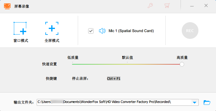 WonderFox HD Video Converter Factory 也支持屏幕录制,可以选择全屏模式和自定义分辨率模式,同时录制画面和声音。