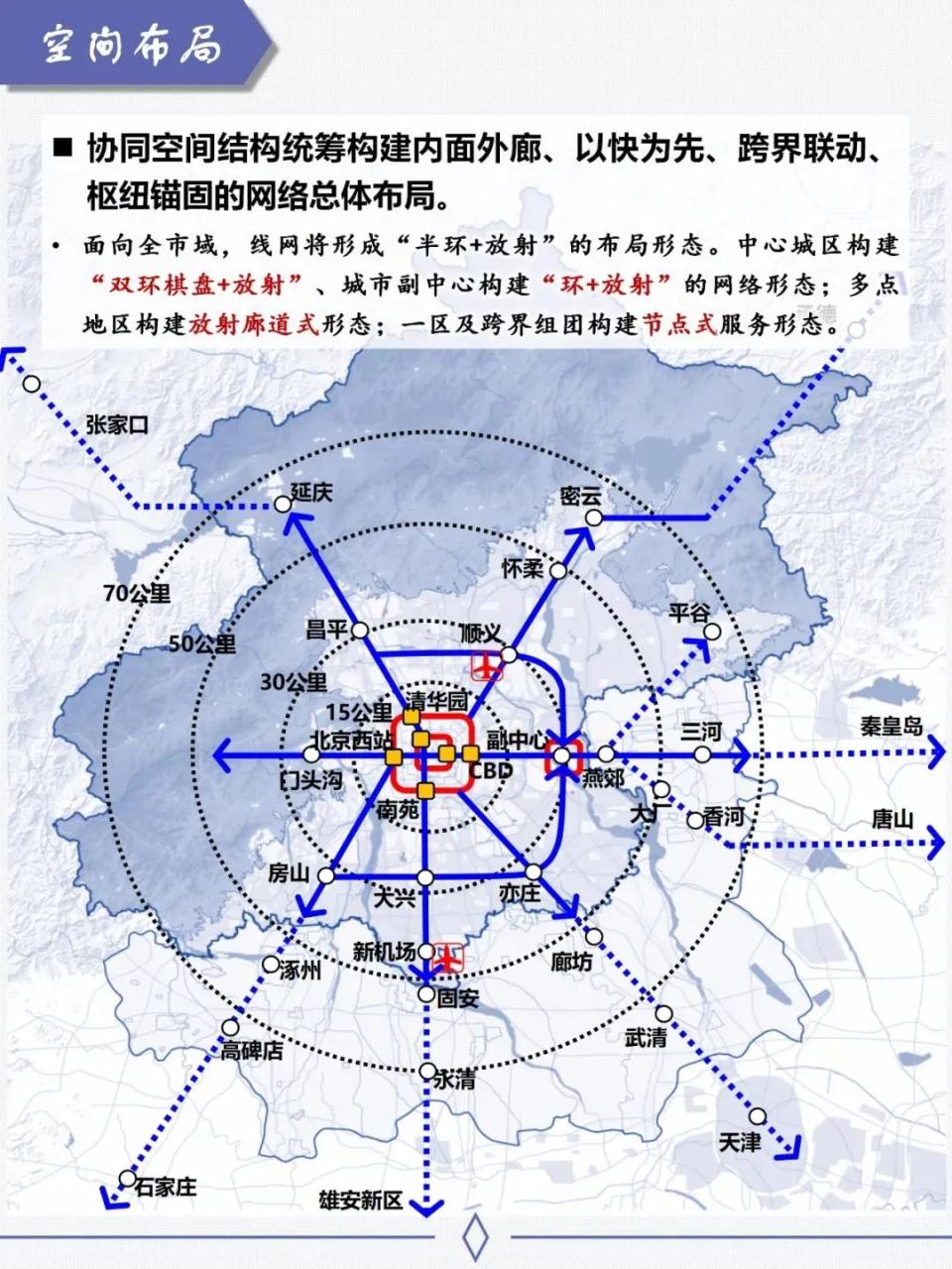 区域级客运枢纽依托城际铁路和区域快线打造,主要布局在中心城区与多点新城地区北京最新地铁图,用于承担京津冀核心区域和首都圈地区客运功能。其中,中心城区的区域客运枢纽主要功能为加强重点功能区对外辐射力,带动区域协同发展,如金融街站、北京东站等。多点新城的区域客运枢纽主要功能为提升区域发展动能,如昌平站、顺义站、黄村火车站等。