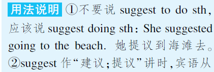 例如:经过语料库研究分析发现,中国学习者在写作中非常容易误用suggest sb to do sth,但国外引进的词典均未对此作出特别提示,该词的正确用法应为:suggest that sb do sth。但是《新编英汉学习词典》注意到了这个问题,提供了“用法说明”: