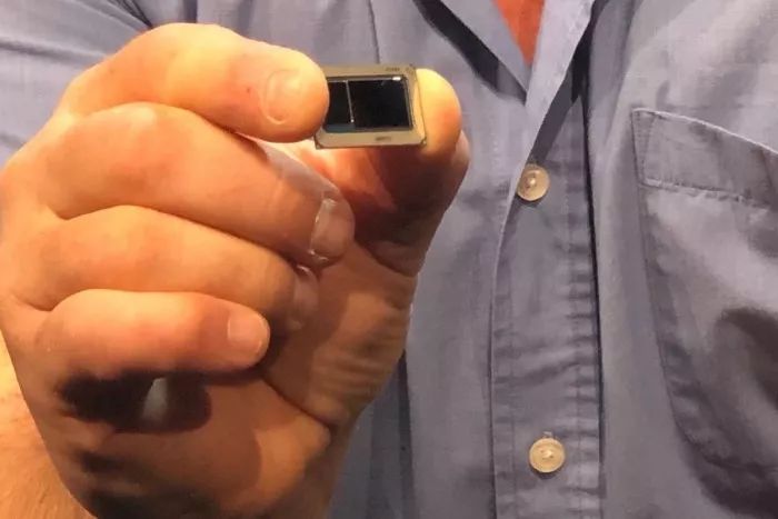 下图就是Tiger Lake处理器、主板的实拍图,其中处理器上还是有两颗Die,大的是处理器本体,小的是PCH芯片组,而主板号称是Intel迄今为止最小巧的。