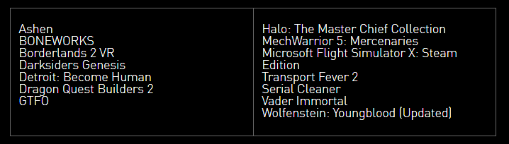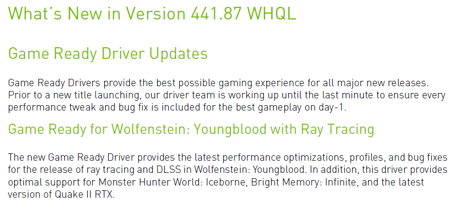 首先,驱动增加了对于《重返德军总部:新血》的光线追踪支持,根据NVIDIA官方给出的信息,这款于去年7月底发售的游戏终于在今天推出了光线追踪补丁,兑现了宣传期的承诺。另外驱动提供了对于《怪物猎人:冰原》、《光明记忆:无限》以及《Quake II RTX》最新版本的优化,其中《怪物猎人:冰原》应该有不少朋友要玩。