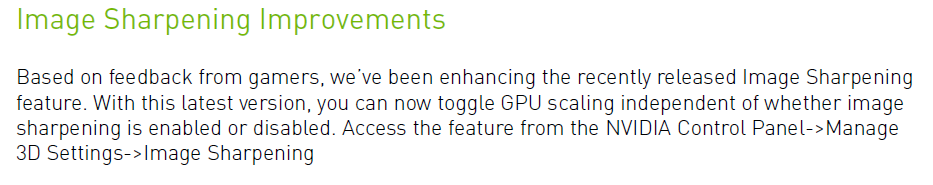 早前引入的Image Sharpening有了新的改进,现在GPU缩放功能与锐化滤镜相独立,可单独开启。