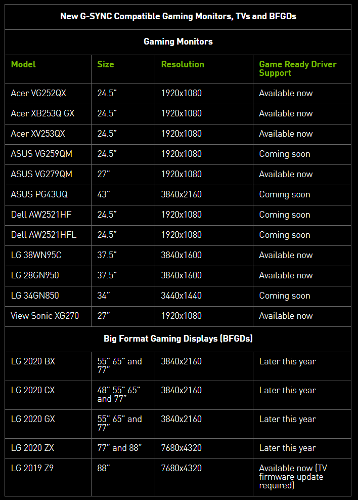最后是为多款新显示器加入G-SYNC Compatible支持: