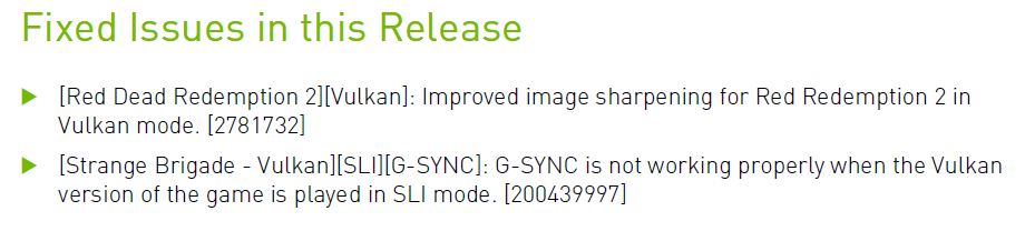 只修复了两个bug,一个是锐化滤镜的相关优化,另一个是G-SYNC与Vulkan、SLI模式的相关故障,后者比较小众。