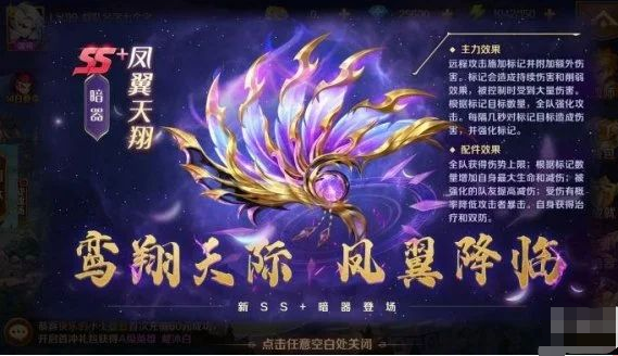 凤凰灼烧:每段时间造成佩戴者一定百分比的攻击力伤害凤翼天翔,持续一段时间。目标被控制时立即受到佩戴者攻击力一定百分比的真实伤害。