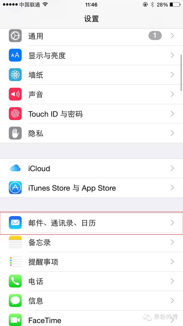 在此设置界面,我们可以看到通讯录一项,如果没有勾选,请勾选上。如果已经勾选过的,那么可以不用往下看了哈。