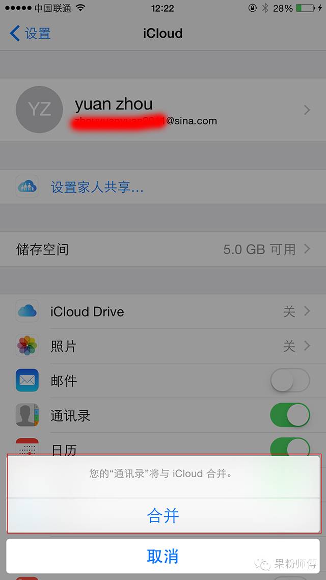 我选择的是合并通讯录。现在通讯录已经成功备份到iCloud云端了。
