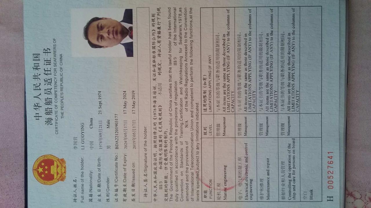 2、三副或以上资历,为人诚实,有责任心中国船员招聘,有较强的英文能力。