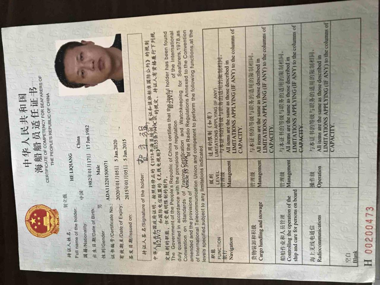 2.持有海务(外贸化学品船),具备相关化学品经验,甲类船长证书