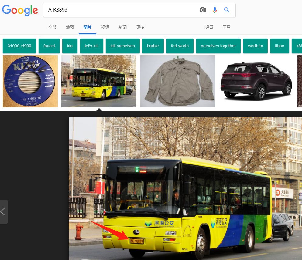 如果不是纯数字,带上英文呢?只在图片上有,网页上没有出现过的文本还真不好找,最后差评君试了个汽车图片,把车牌号 “ A·K8896 ” 搜了一下。。