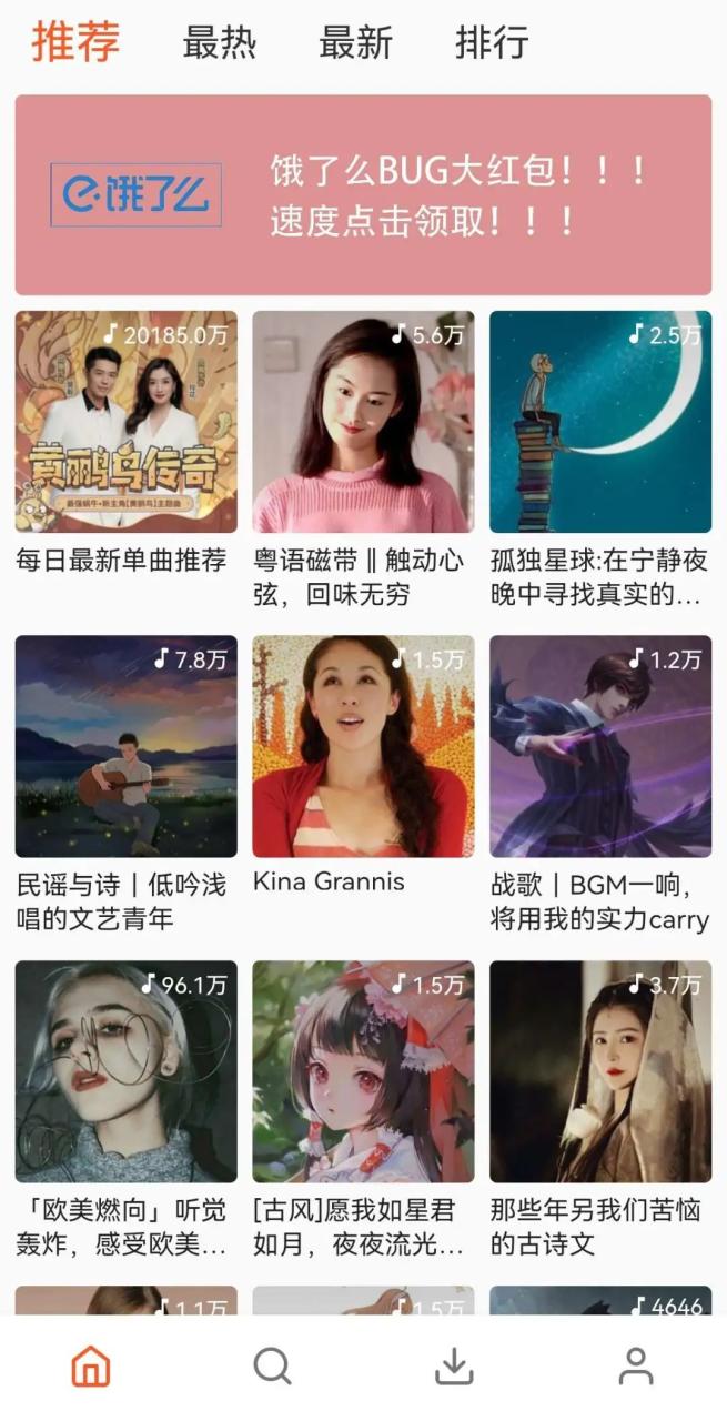 软件大小仅为3M,有下载不了的在设置里换一下引擎。推荐歌单都是比较经典的,有新歌也有老歌,有古风的也有欧美的。