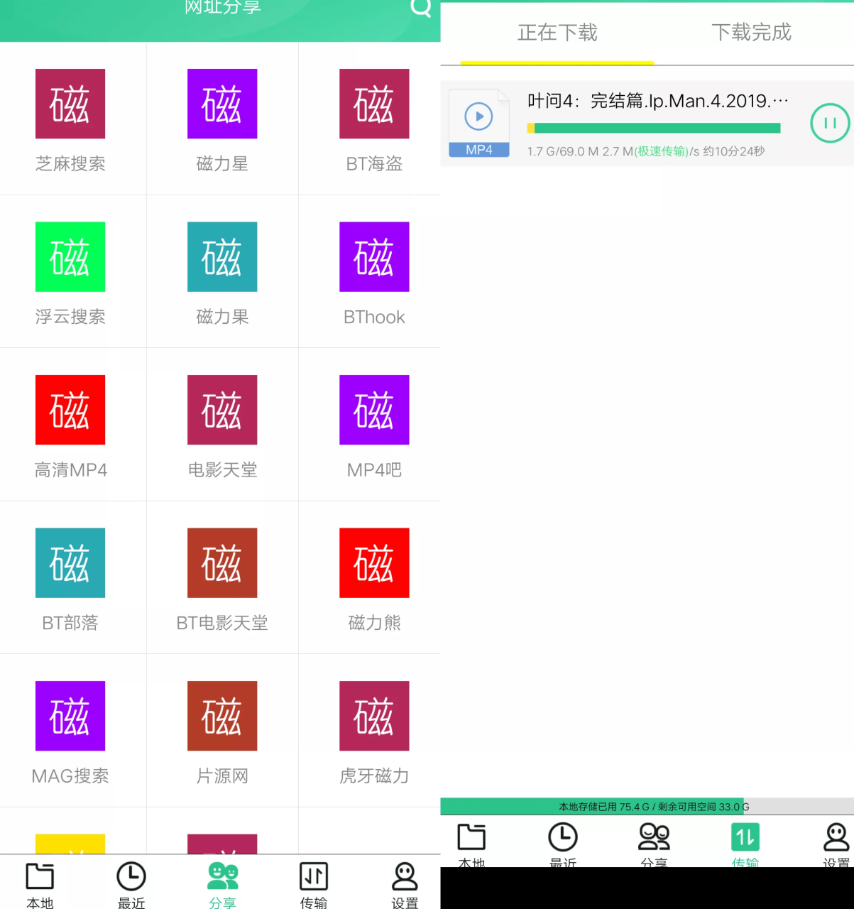 像老司机们最喜欢的磁力链接资源类型,它的最大优势在于资源种类几乎没限制,只要做种人数够多,分分钟榨干你家宽带,乃资源下载的最佳选择之一!内置了四条资源搜索引擎,各个版本都是应有尽有~