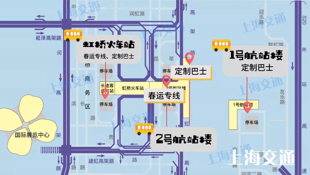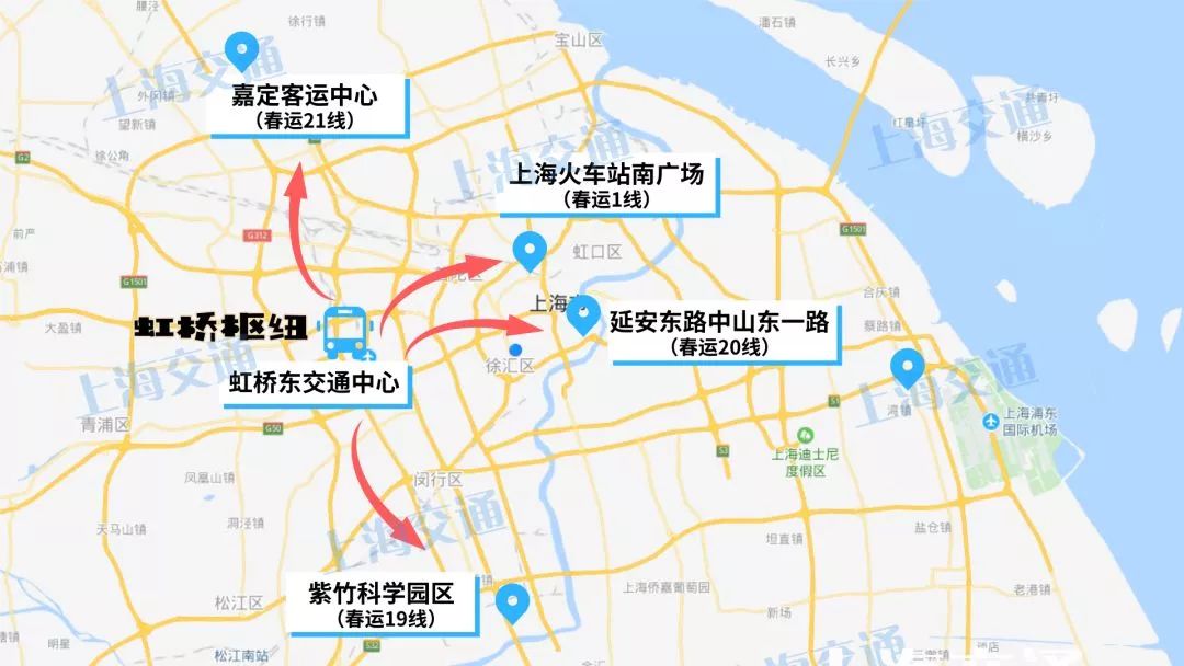 旅客乘飞机或者高铁到达虹桥枢纽,可以乘哪些春运(临时)专线返程?分别在哪里上车?接着往下看吧~~
