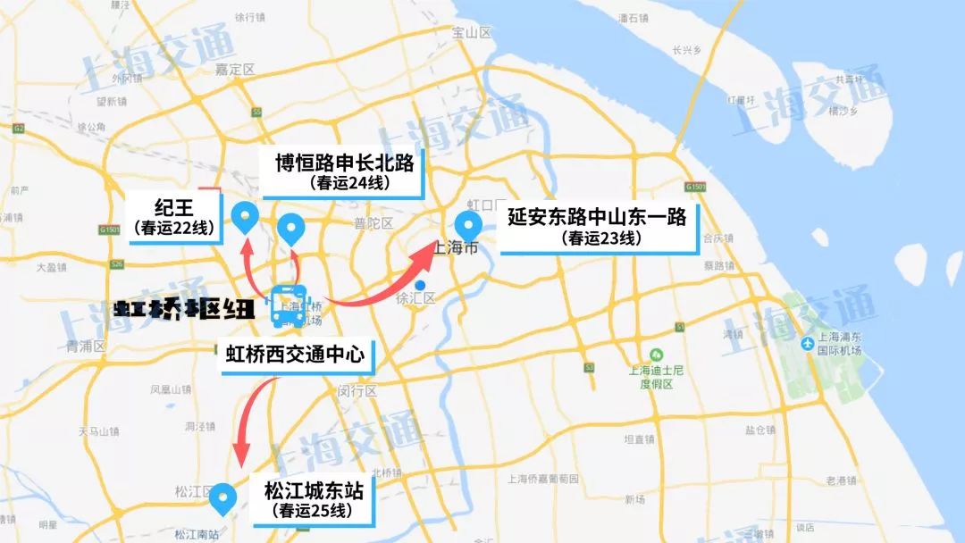 同时,根据春运期间返程客流特征,地面公交在虹桥枢纽增设春运临时专线。