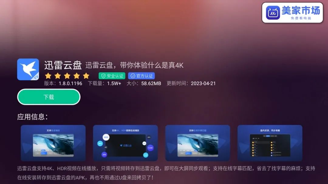 美家市场用户下载安装迅雷云盘TV版,可享30天会员福利,还等什么?马上安排上!