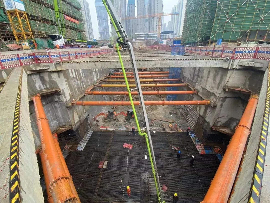 3月27日,历经15个小时浇筑作业后,湖南建工混凝土有限公司含浦站顺利完成长沙地铁2号线西延二期映日路地铁站首块底板浇筑,本次浇筑的底板长20米,宽20.9米,板厚1米,共计浇筑混凝土527方。