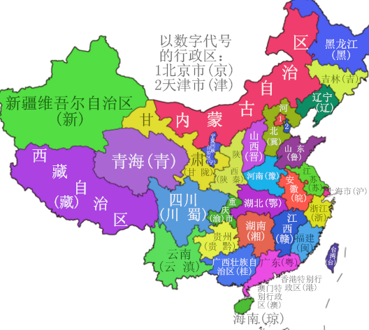 这些简称都是唯一的,大家都已经耳熟能详了。但是,中国有五个省是特例,这五个省每个都有两个简称。