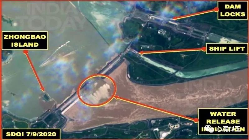 卫星图像显示,7月9日三峡大坝一度打开全部阀门排水(今日印度卫星图片)