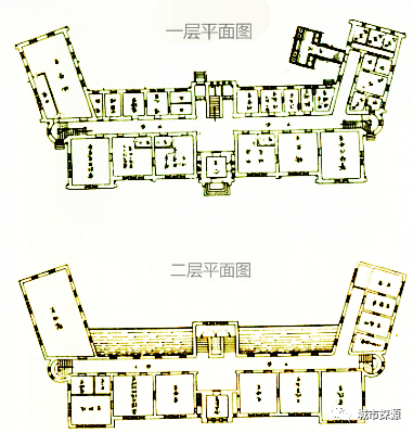 但前田设计的大连民政署厅舍又与之不同,其面向广场的前部平面为长方形,后部则是梯形,两者中间为梯形走廊,大楼两侧的夹角则巧妙的设计成哥特式塔楼,作为上下楼梯使用,使大楼平面在方形构图中加入圆形,这样既高效利用了长方形与梯形结合部的空间,又塑造了曲线型的艺术形象,整体样态更富有动感。