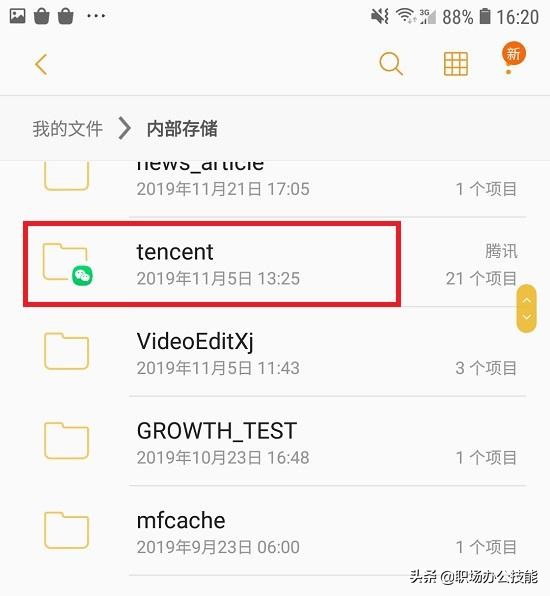 Tencent文件夹只要是手机中安装了QQ的一般都会有这个文件夹,打开之后,从中找到【QQfile-revc】这个文件夹,这里面的文件都是通过QQ传输保存下来的文件基本上都是没用的,所以我们可以进行删除。