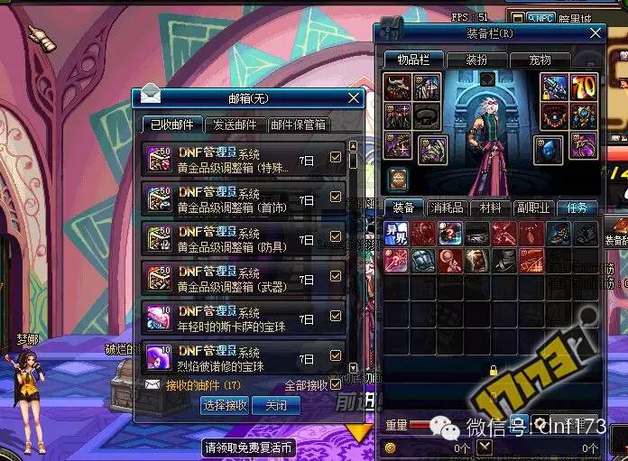 进入游戏后,我们会发现,系统送出大量黄金调整型、透明天空、决斗胜点,PK服目前可以直接穿透明天空,装备为一身传说dnf卡在选择角色进不去,具体装备介绍,我们下期再讨论吧。